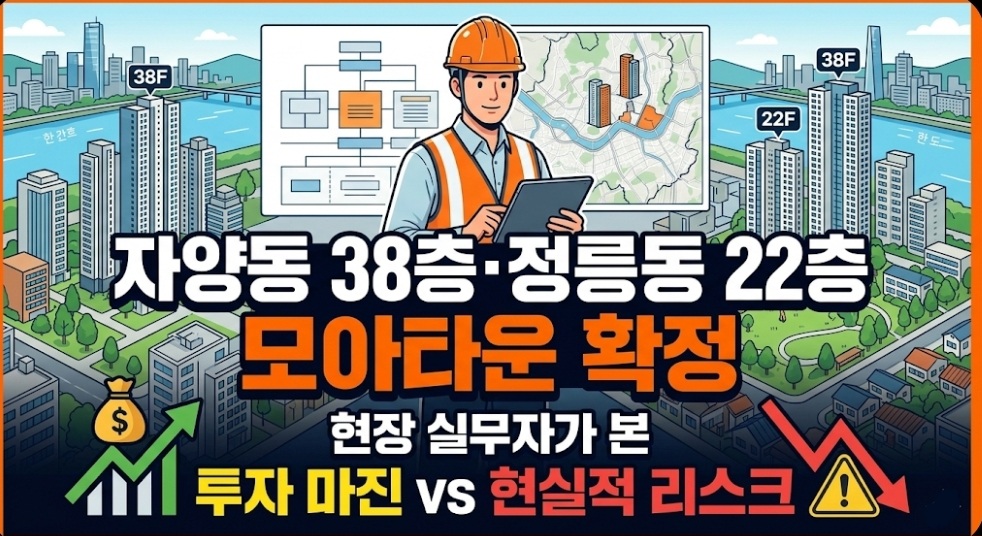 결론적으로 자양2동과 정릉동 모아타운은 각각 강남 생활권과 강북 도심 생활권을 대표할 수 있는 알짜배기 정비사업지입니다. 자양동은 확실한 시세 차익과 한강변 하이엔드 주거지를 원하는 자본력 있는 투자자에게 적합하며, 정릉동은 도심 출퇴근의 편의성과 쾌적한 자연환경을 중시하는 실거주 목적의 3040 세대에게 매력적인 대안입니다.